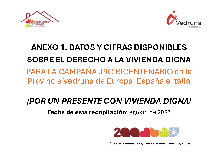 En el Bicentenario de la Familia Vedruna, levantamos la voz ante la creciente vulneración del derecho a un hogar digno. Millones de personas y familias en España  e Italia viven excluidas del acceso a la vivienda. Creemos firmemente que tener un hogar no es un privilegio, sino un derecho humano fundamental. Hoy, más que nunca, te invitamos a unirte a esta campaña para sensibilizar, actuar y construir juntos un presente donde el hogar sea una realidad para todas las personas. Por eso, lee nuestro manifiesto y únete a nosotras.