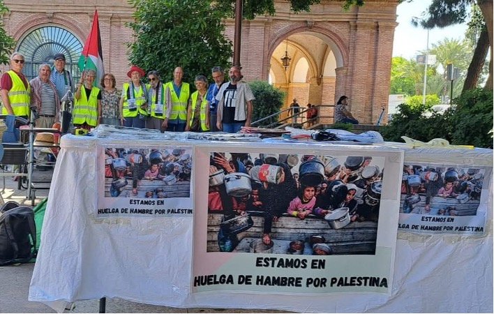 Mención especial merece nuestra participación en todas las acciones en defensa del pueblo palestino: Hace dos años realizamos una de las primeras acciones importantes, un encierro en el Campus de la Universidad de Murcia, pertenecemos a la plataforma Palestina Libre y hemos realizados concentraciones, manifestaciones, apoyamos con materiales, alimentos y nuestra presencia la acampada que realizaron un grupo de estudiantes universitarios, vigilia con lectura del nombre niños y niñas asesinados, una huelga de hambre intermitente, una cadena humana y seguiremos hasta que acabe el genocidio de este pueblo inocente.